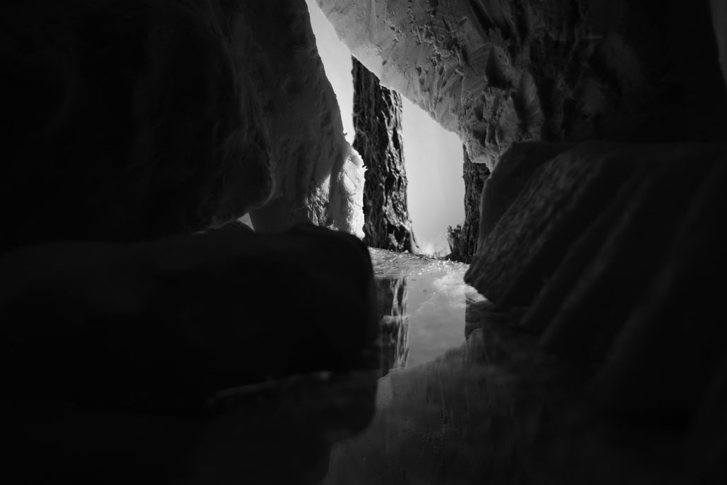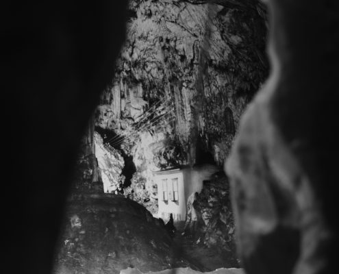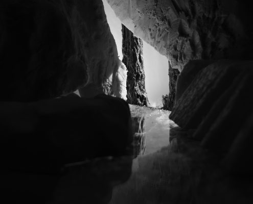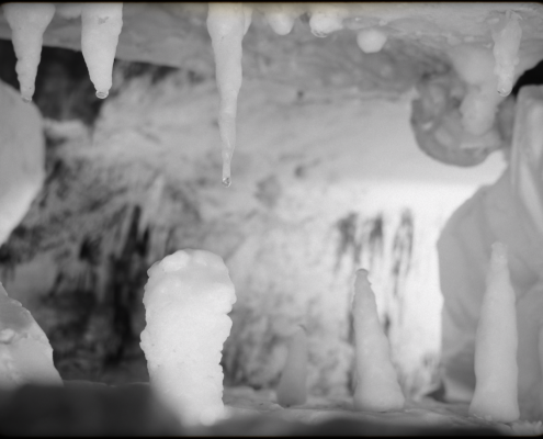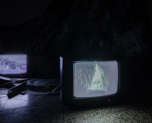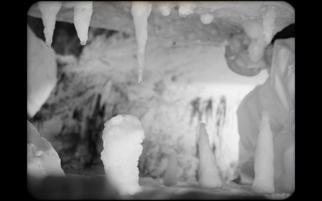 “The work draws on the history of the exploration and archiving of this naturally constructed space from the 18th and 19th centuries onwards, when the cave ceased to be associated with the Christian underworld. The cave is a fundamentally inhospitable natural space for majority of living beings, but at the same time a space that is only fully sensually accessible to a human through various visualizations, measurements and archaic processes of subtraction of form (throwing stones to measure depth, listening and observing the flow of water, etc.). The latter is also the rea- son why, since this very period, caves also became an object of fascination, accelerated discovery and domestication, for example, by laying out paths or placing buildings and trains in them. A special case within the local area is the Lippert Cave, which was discovered in 1886 by Vilijem Putick in the process of studying the subsiding waters near Planinsko Polje, but after its discovery – despite continuous searches – was never found again, which shifted the stories about it to the borderline of the fictional. Despite the inclusion of documentary material, Uncertain Grounds does not attempt to reconstruct any specific cave, but rather unpacks the different aspects of experiencing this specific space with its own formal and material characteristics, where the documentary and the factual are constantly intertwined with the imaginary.”